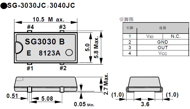 | 輸出電壓 | VoH | Vio-0.4V Min. | loH=0.4mA (SG-3040:Vio1.2V to 3.6V | |