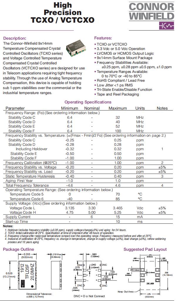 TFLD6C-024.0M|低抖動石英晶體|6G無線網絡晶振,Connor-Winfield晶振,TFLD6C貼片晶振,TFLD6C-024.0M晶振,TCXO晶振,進口有源晶振,低抖動石英晶體,頻率24MHz,電壓3.3V,工作溫度-40~85°C,頻率穩定性25ppb,無鉛環保晶振,低老化晶振,6G無線網絡晶振,電信交換機晶振,顯卡晶振,測試與測量設備晶振,光收發器晶振.
