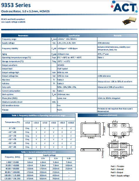 ACT晶振,9353晶振,高質(zhì)量有源振蕩器.智能手機(jī)晶振,產(chǎn)品具有高精度超小型的表面貼片型石英晶體振蕩器,最適用于移動(dòng)通信終端的基準(zhǔn)時(shí)鐘等移動(dòng)通信領(lǐng)域.比如智能手機(jī),無線通信,衛(wèi)星導(dǎo)航,平臺(tái)基站等較高端的數(shù)碼產(chǎn)品,晶振本身小型,薄型具備各類移動(dòng)通信的基準(zhǔn)時(shí)鐘源用頻率,貼片晶振具有優(yōu)良的電氣特性,耐環(huán)境性能適用于移動(dòng)通信領(lǐng)域,滿足無鉛焊接的高溫回流溫度曲線要求.