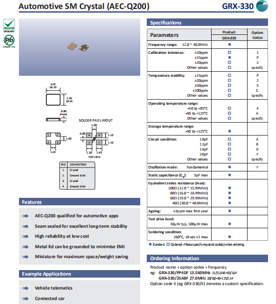 | Golledge晶振 | 單位 | GRX-330晶振 | 石英晶振基本條件 |