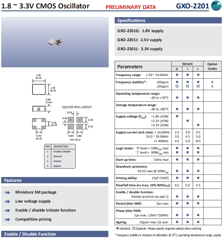 Golledge晶振,GXO-2201晶振,有源晶體振蕩器.智能手機(jī)晶振,產(chǎn)品具有高精度超小型的表面貼片型石英晶體振蕩器,最適用于移動(dòng)通信終端的基準(zhǔn)時(shí)鐘等移動(dòng)通信領(lǐng)域.比如智能手機(jī),無(wú)線通信,衛(wèi)星導(dǎo)航,平臺(tái)基站等較高端的數(shù)碼產(chǎn)品,晶振本身小型,薄型具備各類移動(dòng)通信的基準(zhǔn)時(shí)鐘源用頻率,貼片晶振具有優(yōu)良的電氣特性,耐環(huán)境性能適用于移動(dòng)通信領(lǐng)域,滿足無(wú)鉛焊接的高溫回流溫度曲線要求.