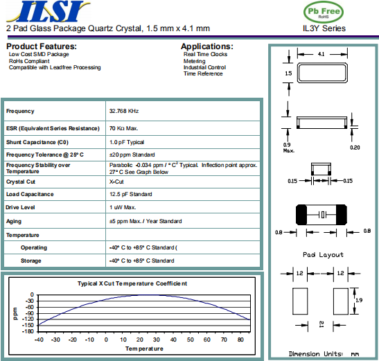 ILSI晶振,IL3Y晶振,無(wú)源環(huán)保晶體.32.768K系列具有超小型,薄型,質(zhì)地輕的表面貼片音叉型石英晶體諧振器,晶振產(chǎn)品本身具備優(yōu)良的耐熱性,耐環(huán)境特性,在辦公自動(dòng)化,家電領(lǐng)域,移動(dòng)通信領(lǐng)域可發(fā)揮優(yōu)良的電氣特性,符合無(wú)鉛標(biāo)準(zhǔn),滿足無(wú)鉛焊接的回流溫度曲線要求,金屬外殼的石英晶振使得產(chǎn)品在封裝時(shí)能發(fā)揮比陶瓷晶振外殼更好的耐沖擊性能.