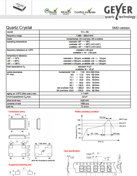 | Geyer晶振 | 單位 | KX-9A晶振 | 石英晶振基本條件 |