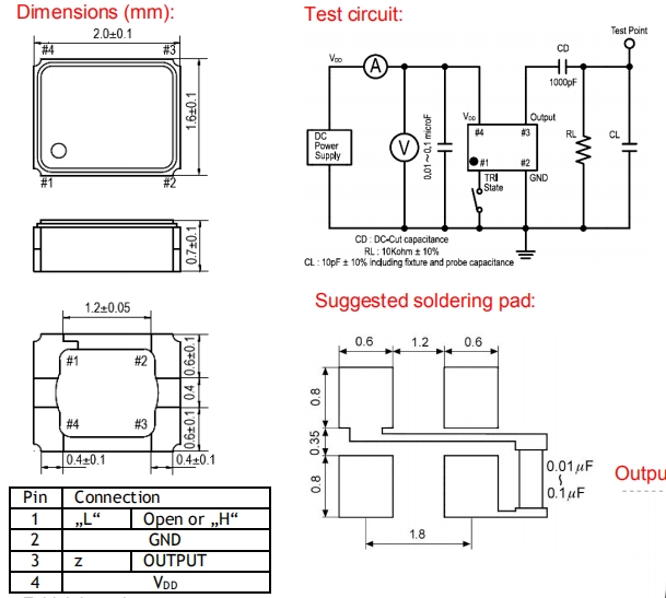 貼片2016晶振可能會在某些條件下受到損壞.例如從桌上跌落或在貼裝過程中受到沖擊.如果產品已受過沖擊請勿使用.