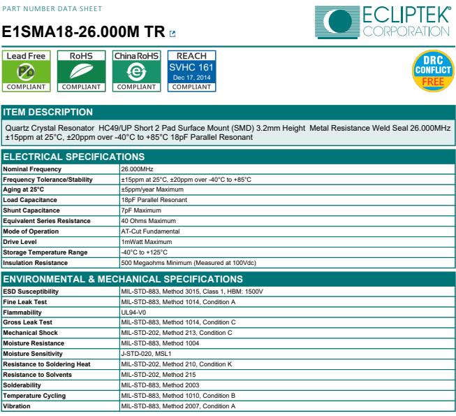 所有石英晶體諧振器和實(shí)時(shí)時(shí)鐘模塊都以IC形式提供.ECLIPTEK日蝕晶振,E1SMA18-26.000M-TR高品質(zhì)晶振,石英晶體諧振器.