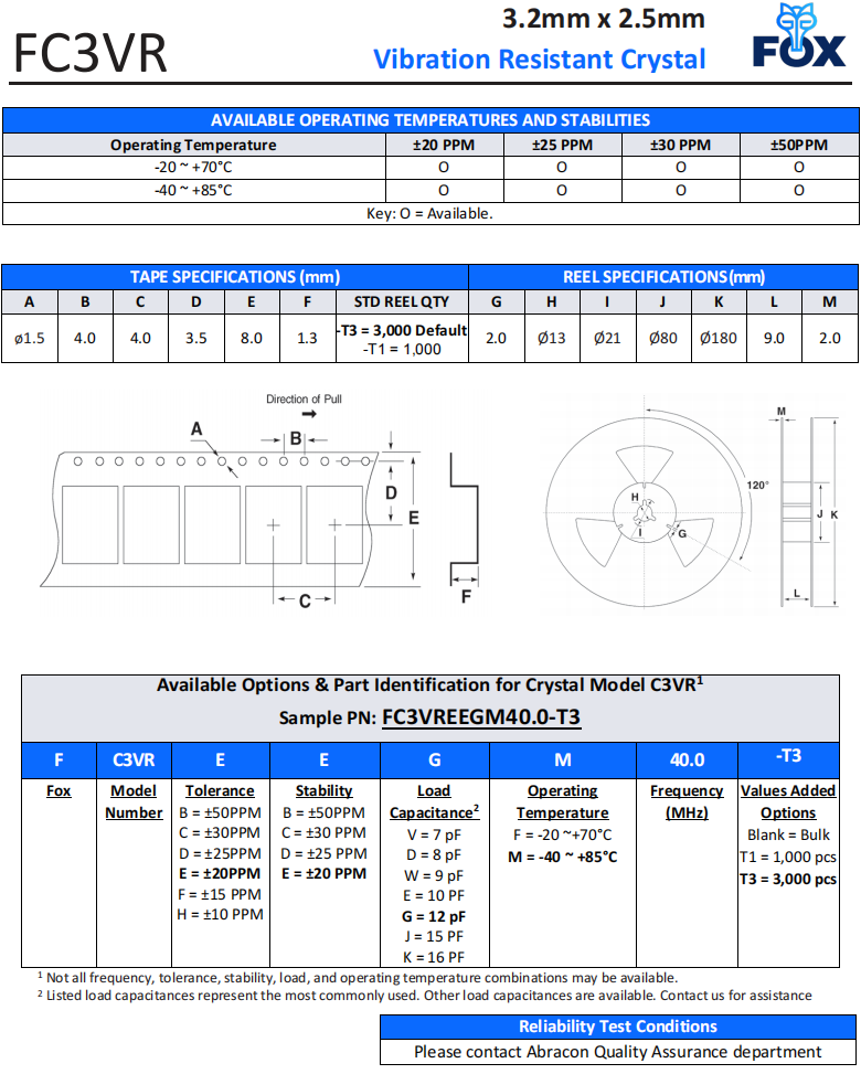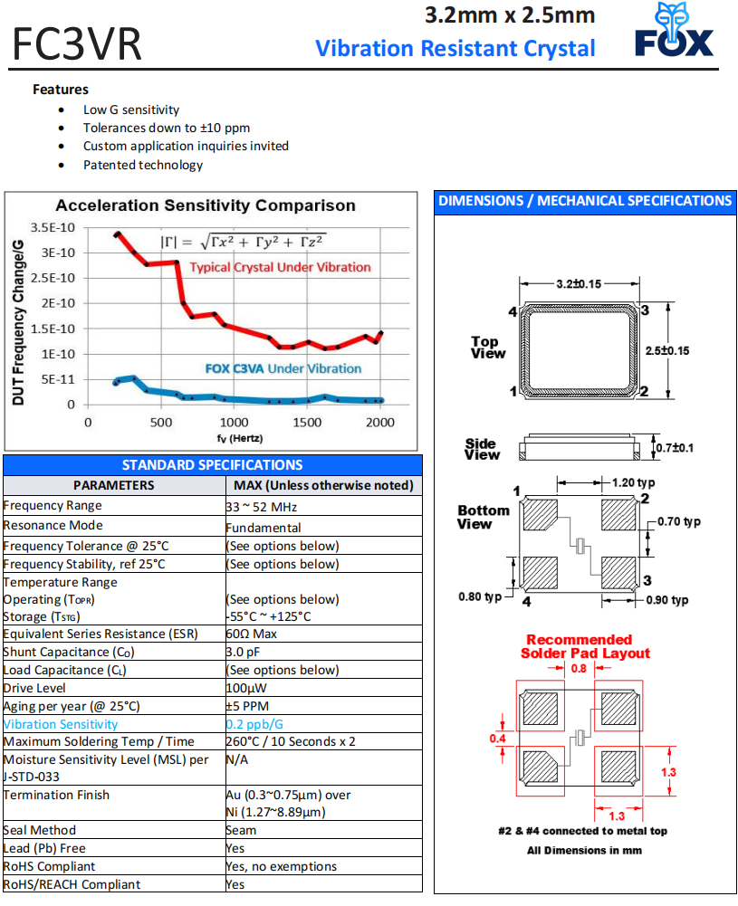 FC3VREEDM48.0-T1,3225mm,FOX抗振動晶體,藍牙模塊晶振,參數表