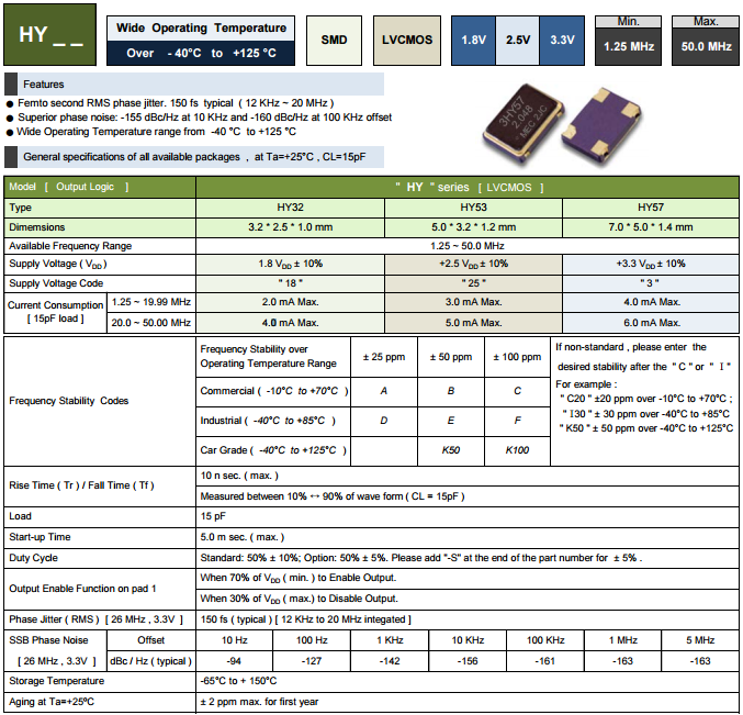 MERCURY晶振,有源晶振,HY53晶振,高品質有源晶體振蕩器.石英晶體振蕩器在設計時就與各款型號IC匹配等相關技術,使用IC與晶片設計匹配技術:是高頻振蕩器研發及生產過程必須要解決的技術難題.在設計過程中除了要考慮石英晶體諧振器具有的電性外,還有石英晶體振蕩器的電極設計等有它的特殊性,必須考慮振蕩器的供應電壓,起動電壓和產品上升時間,下降時間等相關參數. 石英晶振多層、多金屬的濺射鍍膜技術:是目前研發及生產高精度、高穩定性石英晶體元器件——石英晶振必須攻克的關鍵技術之一。石英晶振該選用何鍍材、鍍幾種材料、幾種鍍材的鍍膜順序,鍍膜的工藝方法(如各鍍材的功率設計等)。使用此鍍膜方法使鍍膜后的晶振附著力增強,貼片晶振頻率更加集中,能控制在最小ppm之內。
