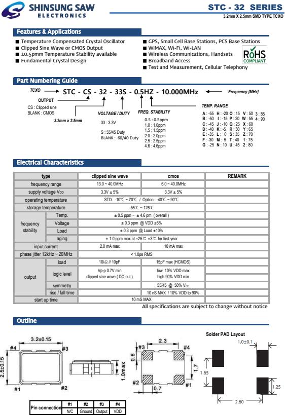 SHINSUNG晶振將確保其石英晶體振蕩器和石英晶體諧振器產(chǎn)品及相關(guān)設(shè)施滿足甚至超出國(guó)家的以及地方環(huán)保機(jī)構(gòu)的相關(guān)法規(guī)規(guī)定及其他要求,同時(shí)該公司盡可能的參與并協(xié)助政府機(jī)關(guān)和其他官方組織從事的環(huán)?;顒?dòng). 在地方對(duì)各項(xiàng)設(shè)施的管理責(zé)任中,確保滿足方針的目標(biāo)指標(biāo),同時(shí)在各種經(jīng)營(yíng)與生產(chǎn)活動(dòng)中完全遵守并符合現(xiàn)行所有標(biāo)準(zhǔn)規(guī)范的要求.韓國(guó)新松晶振,STC-32溫度補(bǔ)償晶體振蕩器,STC-CS-32-33S-0.5HZ-16.000MHz晶振.