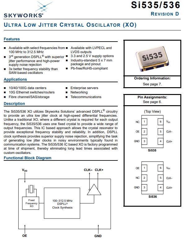 低抖動(dòng)的時(shí)鐘晶體振蕩器是芯科專為企業(yè)服務(wù)器匠心打磨501AAA27M0000CAF,基于Si535/536 IC的XO是工廠編程的在裝運(yùn)時(shí),因此消除了與定制石英晶體振蕩器,可從以下頻率中選擇100MHz至312.5MHz集成superior的第三代DSPLL抖動(dòng)性能和高功率,電源噪聲抑制,頻率穩(wěn)定性比高3倍,基于SAW的振蕩器LVPECL和 LVDS輸出,3.3和2.5V電源選項(xiàng),行業(yè)標(biāo)準(zhǔn)5 x 7毫米,封裝和引腳排列,無鉛/符合RoHS標(biāo)準(zhǔn),應(yīng)用:10/40/100G數(shù)據(jù)中心,10G以太網(wǎng)交換機(jī)/路由器,光纖通道/SAS/存儲,企業(yè)服務(wù)器,網(wǎng)絡(luò),電信.