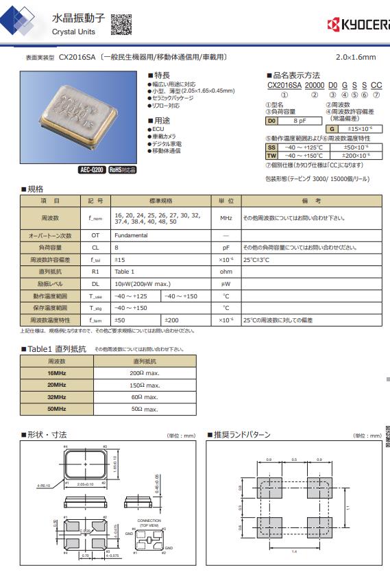 更多>>京瓷輕薄型的貼片晶振可滿(mǎn)足車(chē)載相機(jī)的需求CX2016SA20000D0GSSCC