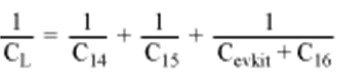 圖3. 評估板晶體等效電路 串聯(lián)牽引電容會加快晶體振蕩,而并聯(lián)電容會減緩振蕩。Cevkit為5pF,如果使用負載電容為5pF的晶體,會振蕩到需要的頻率上,因而無需外部的電容(C16不接,同時C14和C15在板上短接)。評估板本身使用3pF負載電容的晶體,需要兩個15PF電容串聯(lián)加速振蕩。負載電容的計算如下: