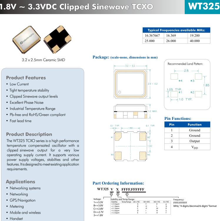 更多>>具備高性能和剪切正弦波輸出的環保TCXO振蕩器WT325CF0026.000000,專用于導航應用,ECERA品牌
