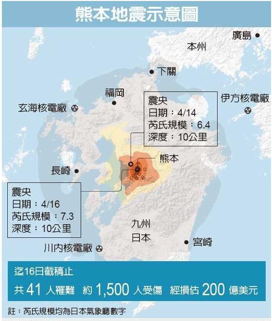 直擊現場新聞報道4月16日00時25分在日本九州島熊本縣發生7.3級地震,震源深度10千米.截至今天上午9時,在7級連環強震中,已有24人遇難,900余人受傷.一些建筑物被毀,同時出現道路龜裂崩塌,大橋斷裂.該地區九州是日本半導體產業重鎮,初估包括Sony影像感測器、東京威力科創微影設備及日本勝高矽晶圓等,都是半導體重要關鍵零組件供應大廠,索尼是蘋果主要供應商來源,有2座工廠處于地震中心附近,位于熊本縣的制造廠受到嚴重的影響停工,人員也無法進入,若沒有庫存支應未來勢必會波及蘋果的生產出貨,導致陷入供應鏈危機.