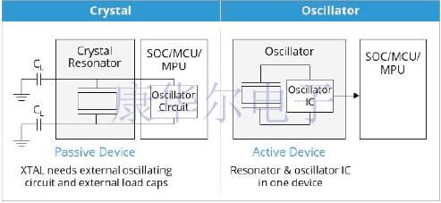 但是首先讓我們簡要介紹一下基礎知識——晶體(XTAL)和振蕩器(XO)有什么區別?石英晶體(有時稱為諧振器)是一種運動/諧振的無源設備,它連接到其定時的芯片中的外部振蕩電路,例如SoC,微控制器或處理器,如左下方所示. 右圖所示的振蕩器是一種集成的時序解決方案,在一個有源器件中包含一個諧振器和一個振蕩器IC.就SiTime振蕩器而言,該諧振器基于硅MEMS(微機電系統)技術,而不是傳統的石英晶體.這種架構可實現強大的“即插即用”計時產品,這些產品具有靈活性,并且很容易在系統中進行設計.