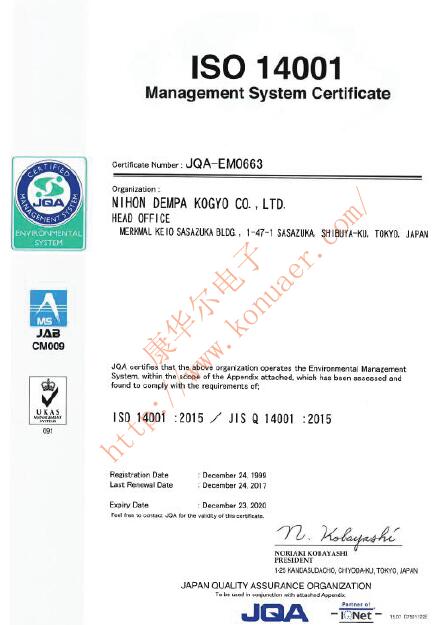 更多>>NX1612AA-26MHZSTD-CSI-3日本NDK晶振公司更換ISO14001證書