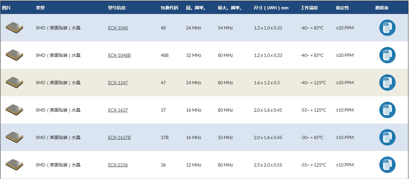 ECS貼片7050晶振無源系列原廠代碼表: