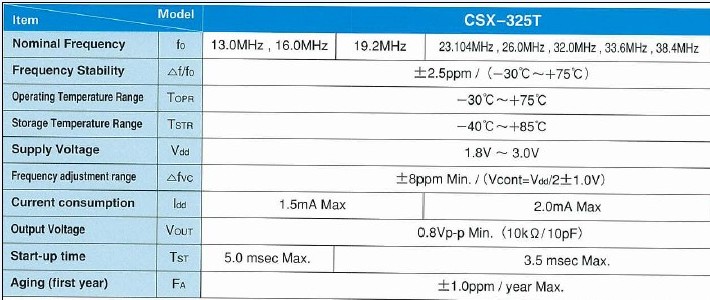 西鐵城溫補晶振,CSX-325T,壓控晶振